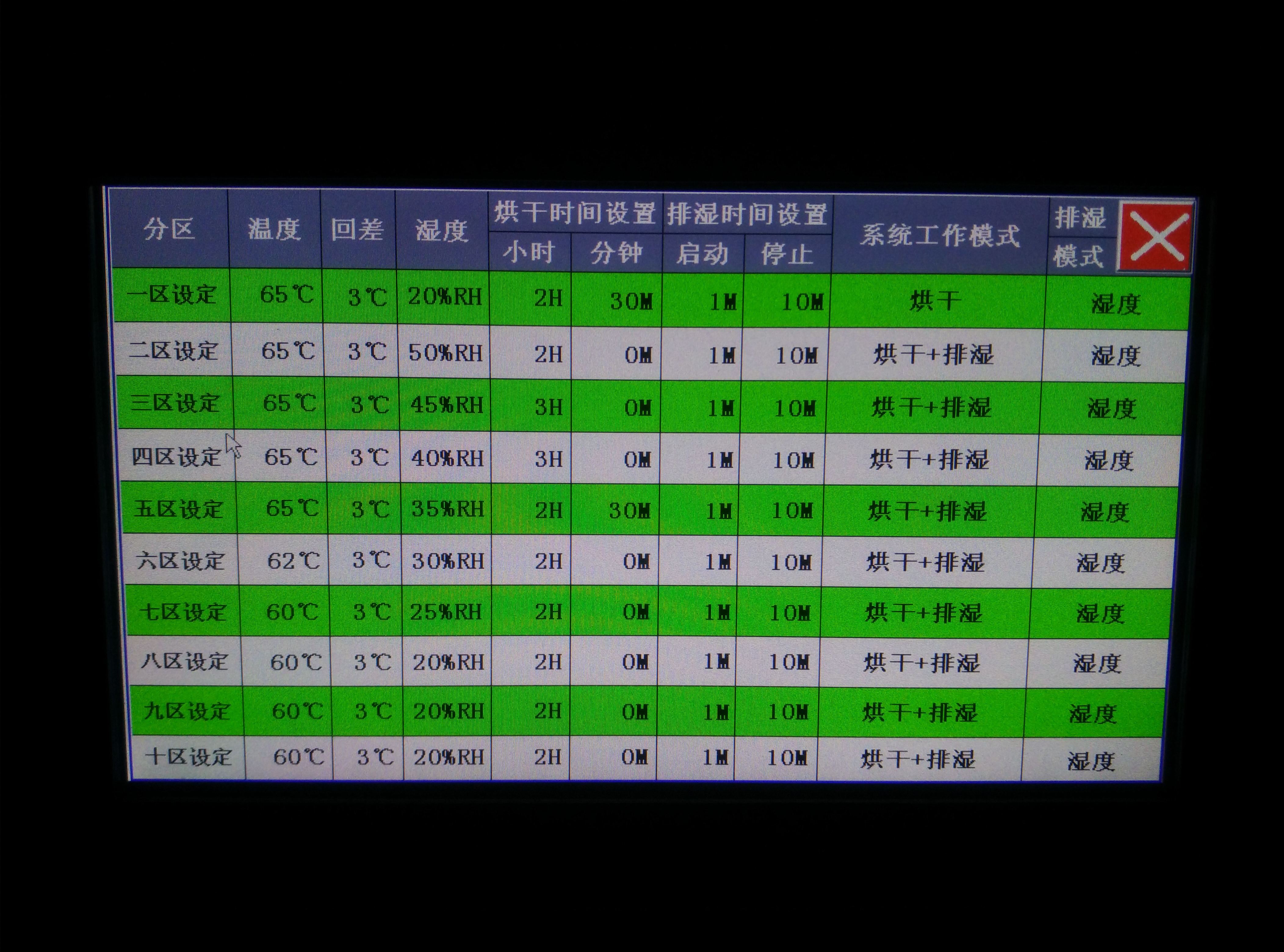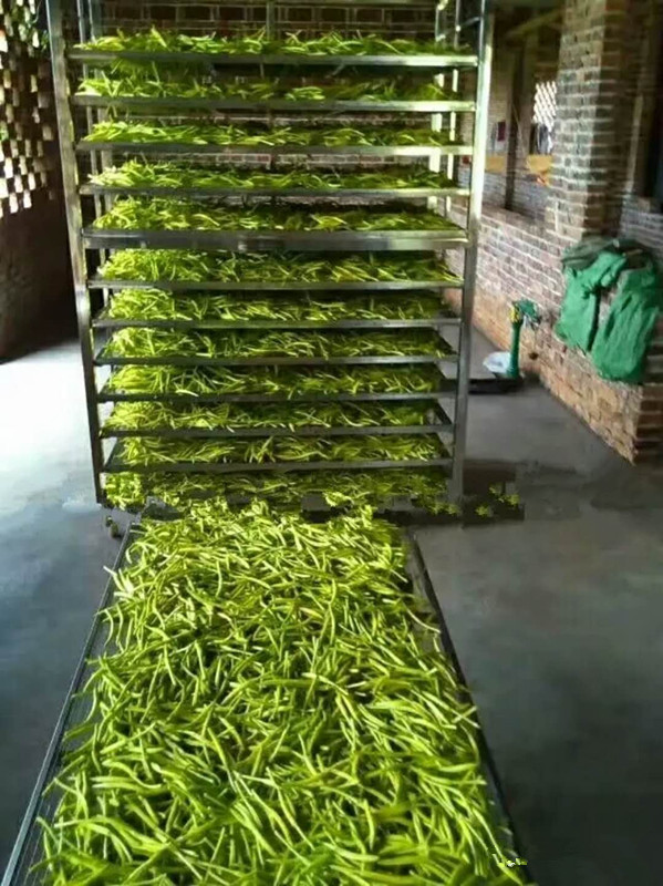 將擺放好黃花菜的物料車推入烘干房內,設定好烘干時段,溫度,排濕量,啟動設備進行烘干。